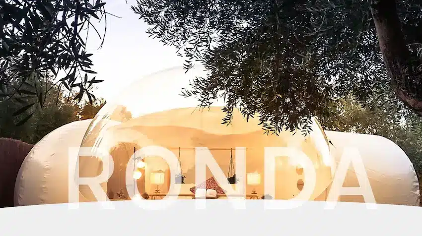 Nomading Camp Ronda en Málaga destaca como un glamping de burbujas excepcional, enclavado en medio de un olivar y rodeado de olivos centenarios. Aquí, podrás relajarte mientras contemplas las estrellas sin salir al exterior. En este alojamiento transparente en Málaga, experimentarás un ambiente sin estrés en un entorno tranquilo e íntimo, junto a la conocida e histórica Venta «El Abogao».